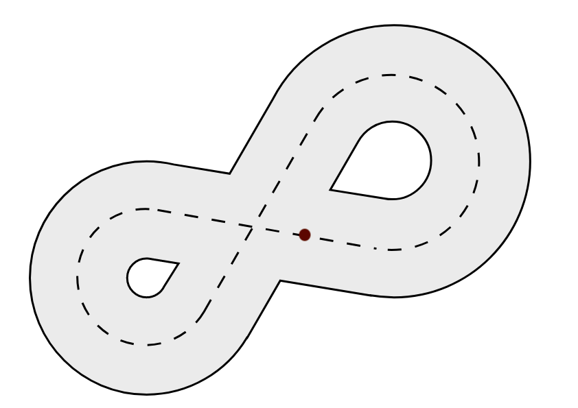 The code in this tutorial is written for this racetrack. The kilobot starts the race with its front leg on the red point. Note that you can adapt it to any race track you want.
